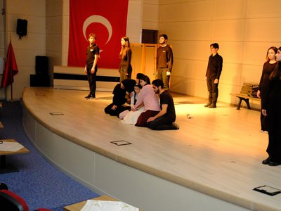 Gümüşhane Üniversitesi Sağlık, Kültür ve Spor Daire Başkanlığı bünyesinde faaliyet gösteren Tiyatro Kulübü tarafından sahnelenen “Sahibinden Komedi” adlı tiyatro oyunu, 31 Aralık 2025 tarihinde saat: 14.00 Şiran Halk Eğitim Merkezi Salonunda gerçekleştirilmiştir. Tiyatro ekibimize ve desteklerini esirgemeyen Şiran Belediye Başkanımız Abdulbaki Kara'ya teşekkür ederiz.